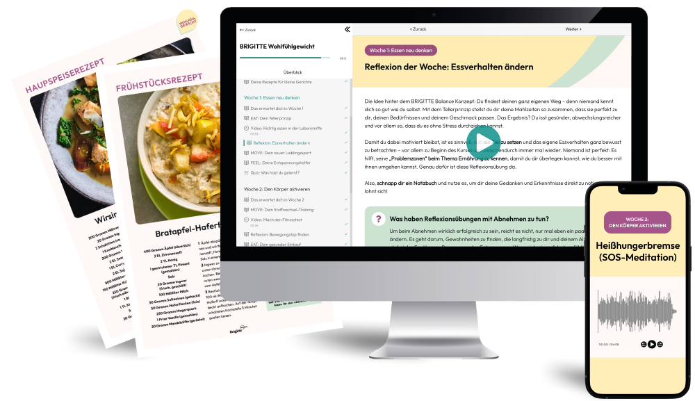 Der Onlinekurs "BRIGITTE Wohlfühlgewicht" richtet sich an Frauen ab 35, die...